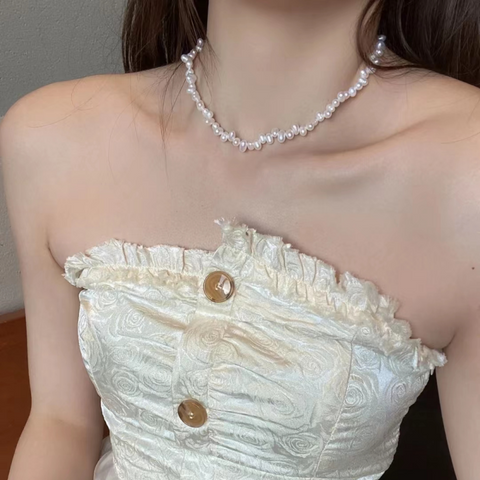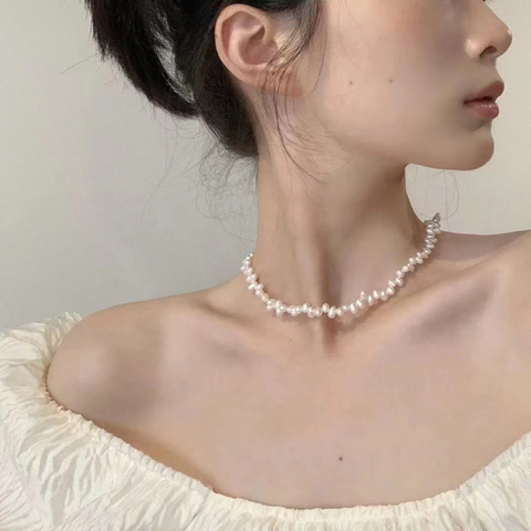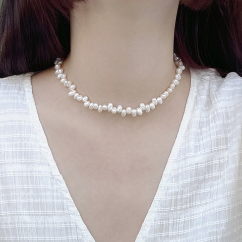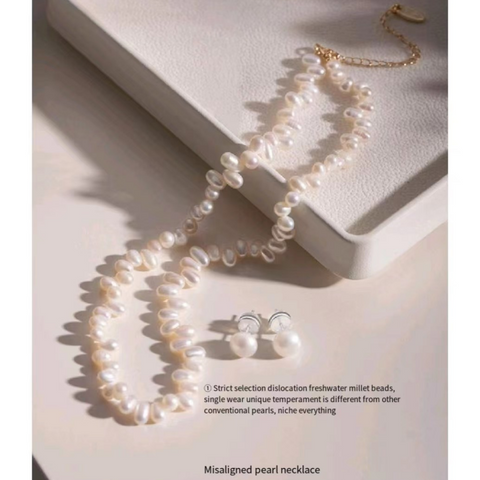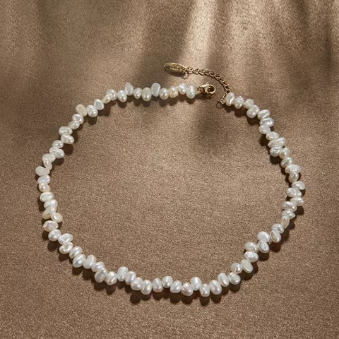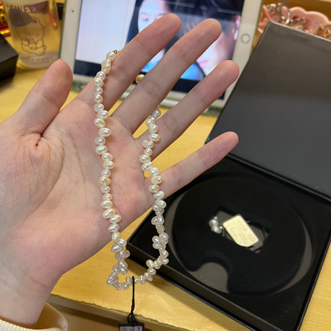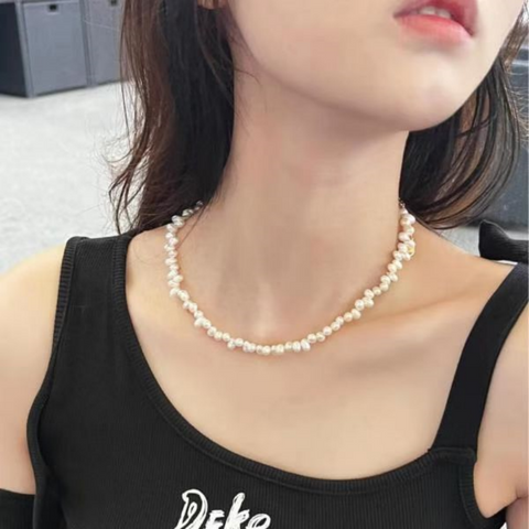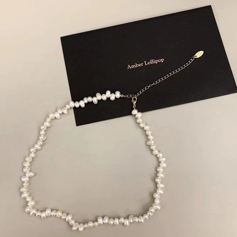 Amber lollipop Baroque Pearl necklace(made from 4~5mm fresh water pearls)malposition style-Copper gold-plated 14K real gold tail chain; The length is about 37cm, and the extension chain is 5cm